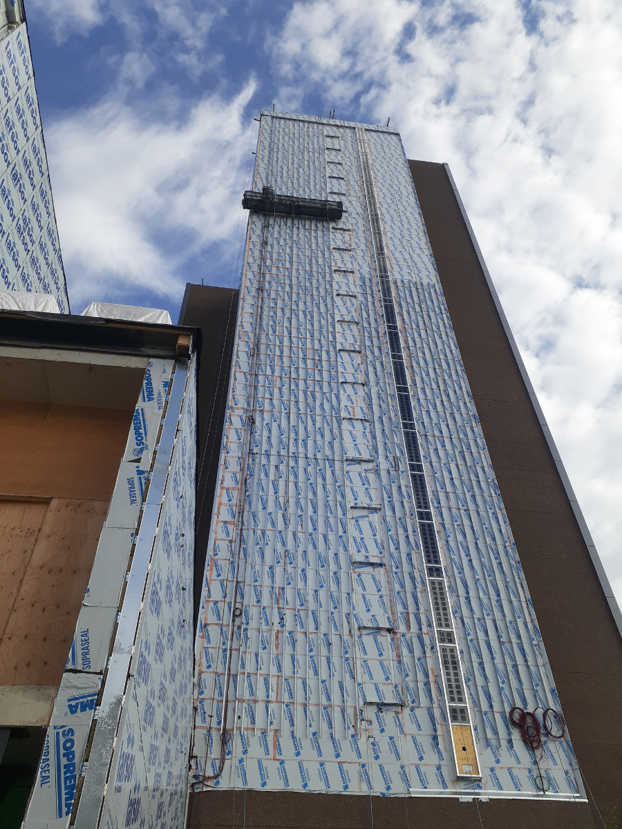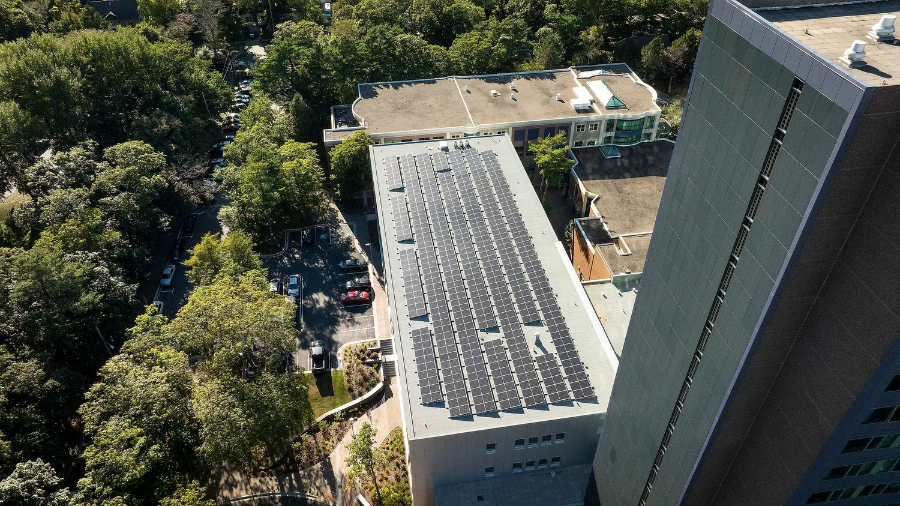 Building-integrated solar precast façade; electrical tie-ins, metering and controls; highly visible campus energy showcase.