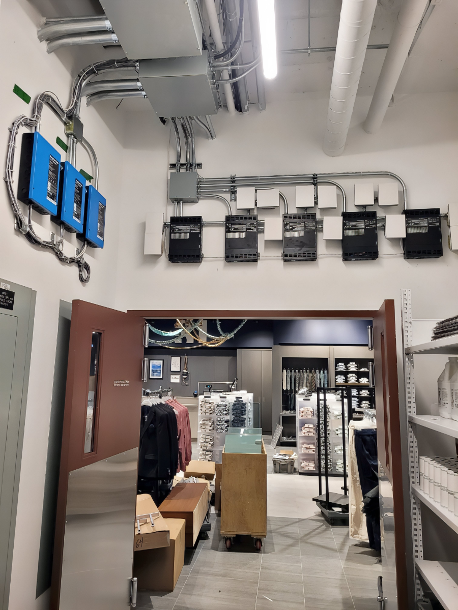 Atlantic flagship department store ~56,200 sq ft; complex mall integration with life-safety, distribution, and high-end retail lighting.
